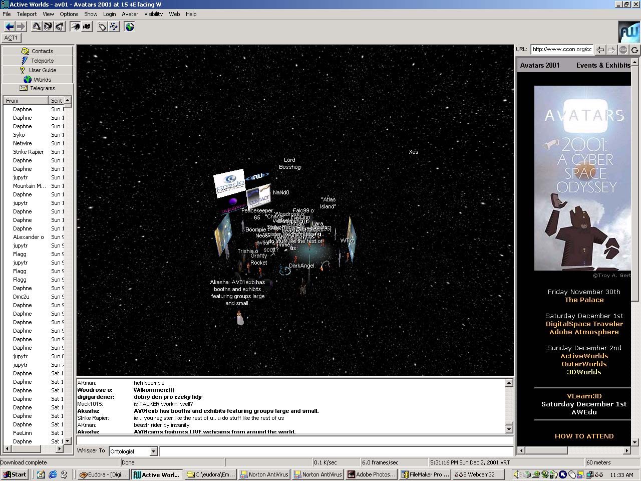 AV2001: An vatar Odyssey CyberConference Photos/Active Worlds